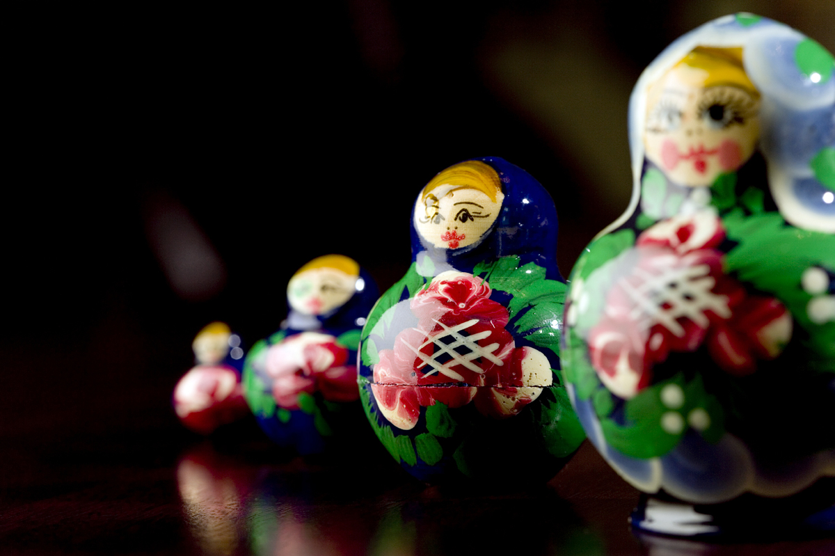 Just for fun, we once took a weekend trip to Charleston, South Carolina. As we strolled through an outdoor market in the town’s historic district, we came upon a table of hand-made Russian nesting dolls. There were about two dozen sets of the colorful matryoshka, each presented in a different theme: animals, children, flowers.